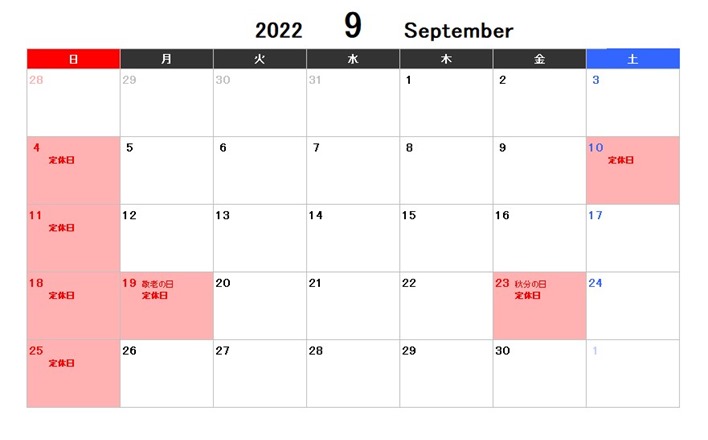 | 日 | 月 | 火 | 水 | 木 | 金 | 土 |
